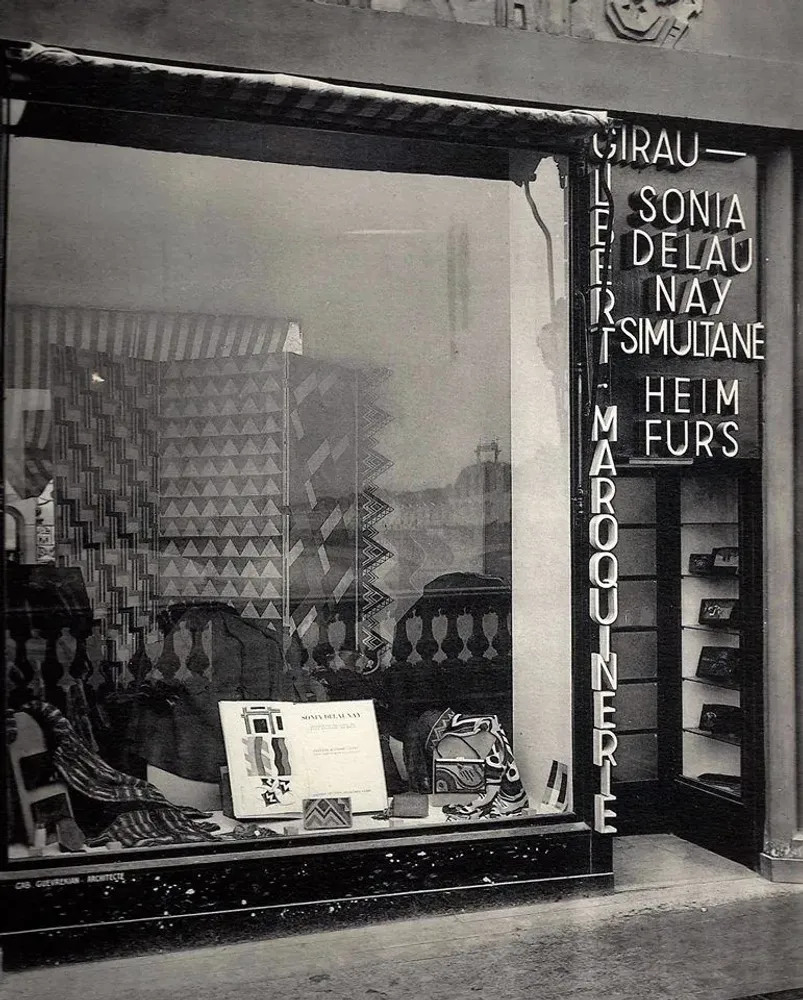 Фасад і вітрина магазину Соні Делоне «Boutique Simultanée», міст Олександра III, Міжнародна виставка сучасного декоративного та промислового мистецтва, Париж, 1925. Фотопластина № 18 з «Façades et agencements de magasins» (Фасади та макети магазинів). Шарль Моро, видавець, Париж, 1925. Розмір (без рами): 28 x 24 см. – до модерну/ів.