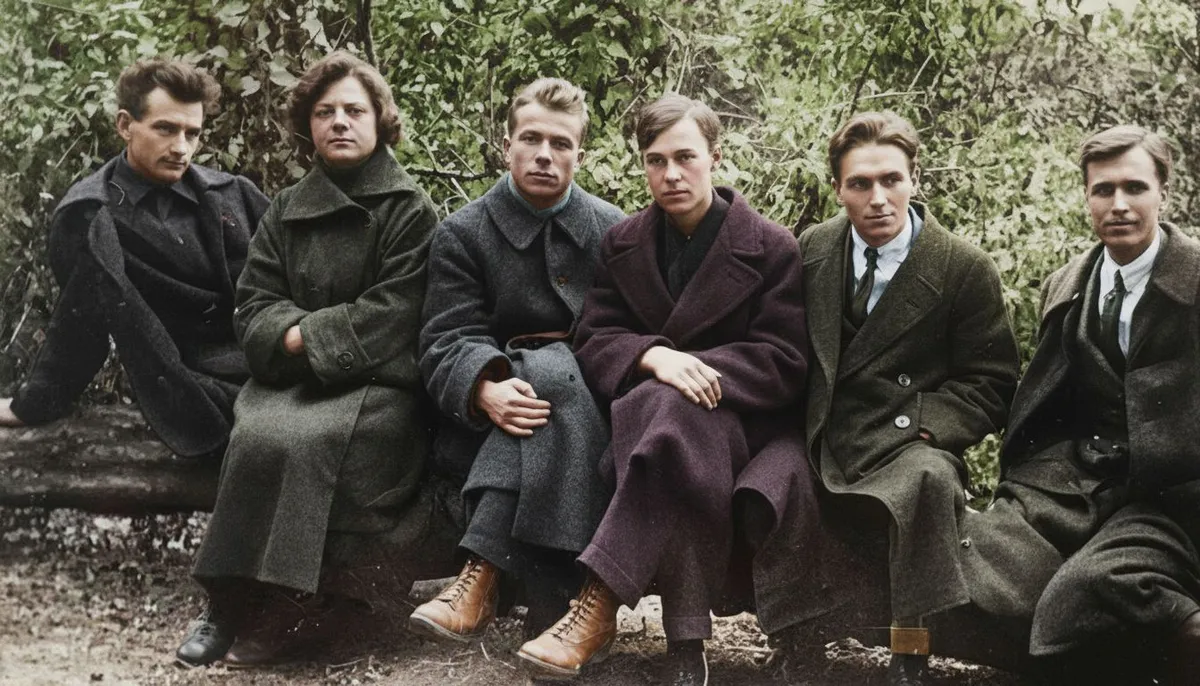 Фото групи "Ланка", в який було шість людей: Євген Плужник, Марія Галич, Григорій Косинка, Валер’ян Підмогильний, Борис Антоненко-Давидович, Тодось Осьмачка. "Ланка".