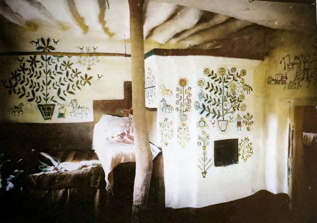 Стіни в хаті подекуди прикрашалися рослинними орнаментами. Інколи наші предки додавали сюди і зображення птахів – півня, галки, сороки. Ці малюнки виконувалися олійними фарбами.