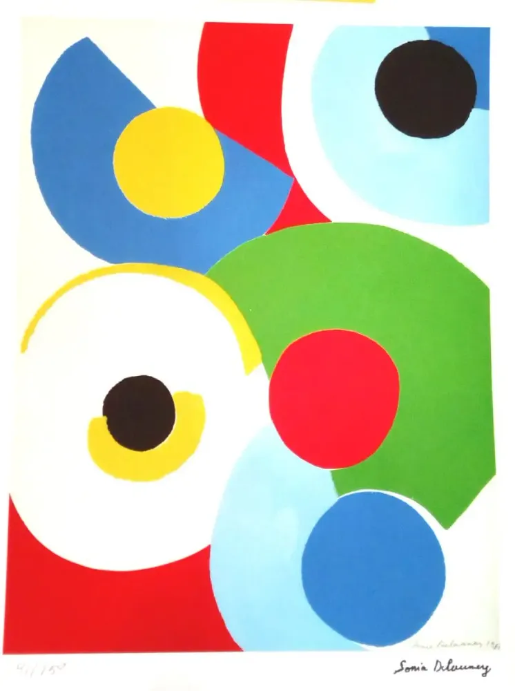 «Кольорові диски», літографія Соні Делоне. Літографія підписана на пластині та пронумерована (№ 91/150), видання C & S, Люксембург, приблизно 1975. Розмір зображення: 33 x 23 см.