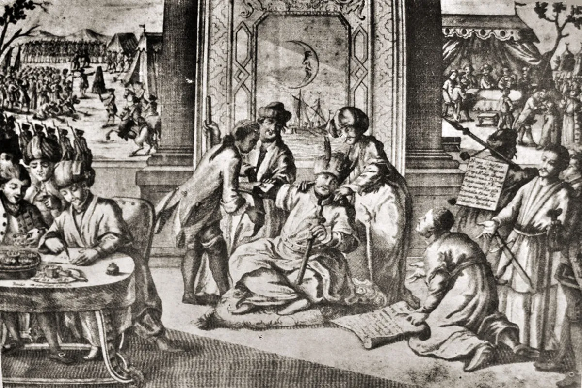 Бахчисарай, колишня столиця Кримського ханстваНа картині зображено Бахчисарайський палац (також відомий як Ханський палац або Гансарай) – архітектурний комплекс XVI століття, який служив резиденцією низки кримських ханів. Побудований у 1532 році Сахібом I Гіреєм, він вважається єдиним збереженим зразком кримськотатарської палацової архітектури у світі.