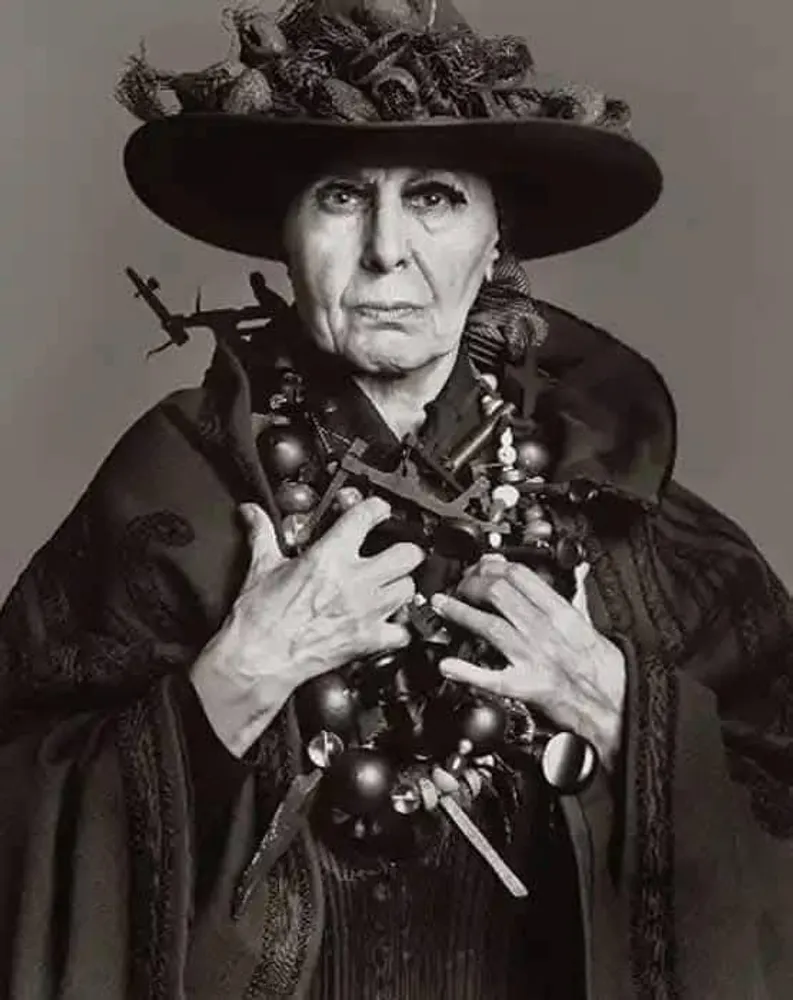 Портрет американської скульпторки Луїзи Невельсон, зроблений відомим фотографом моди та портретистом Річардом Аведоном. Зображення було зроблено в Нью-Йорку в 1975 році.
