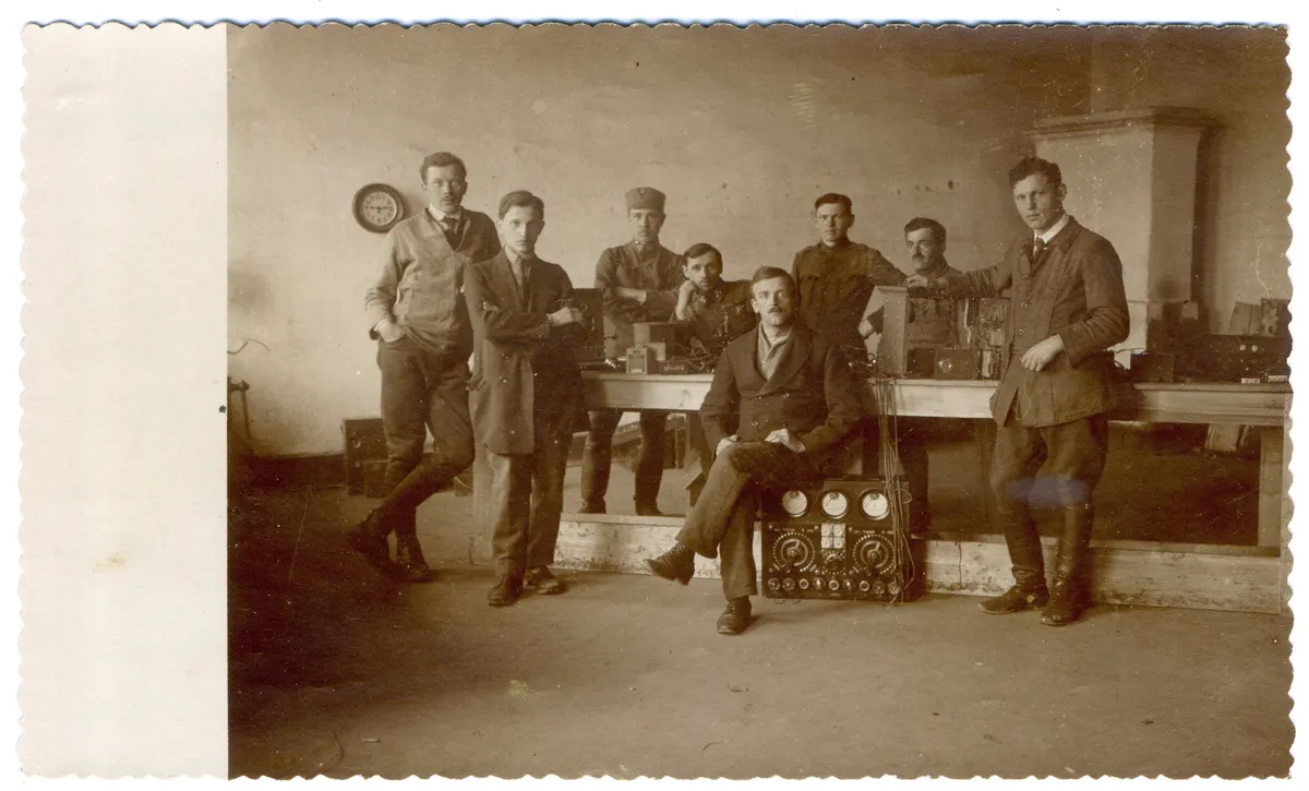 Живе відлуння козацької еліти: Георгій Нарбут у «Контусі» Параски Апостол з Келепом та полковником МілорадовичемНа фотографії Георгій Нарбут стоїть у козацькій залі музею Тарновського (нині кімната Чернігівської обласної бібліотеки для юнацтва), повністю занурений в історичний український образ. Він одягнений у кунтуш Параски Апостол, дочки гетьмана Данила Апостола, тримаючи в правій руці келеп, а праворуч від нього стоїть полковник Михайло «Гармата» Милорадович. Ця постановочна, але водночас документальна сцена показує Нарбута, який не просто вивчає артефакти козацької доби, а буквально носить їх, перетворюючи себе на живе втілення українського дворянсько-козацького минулого.