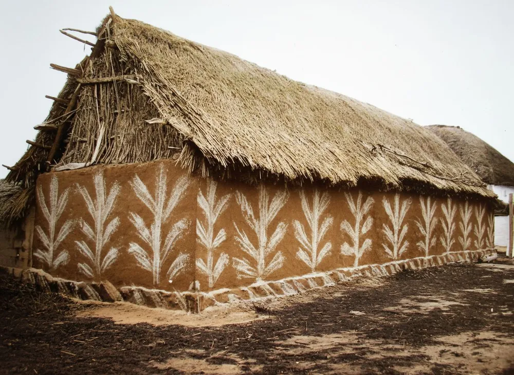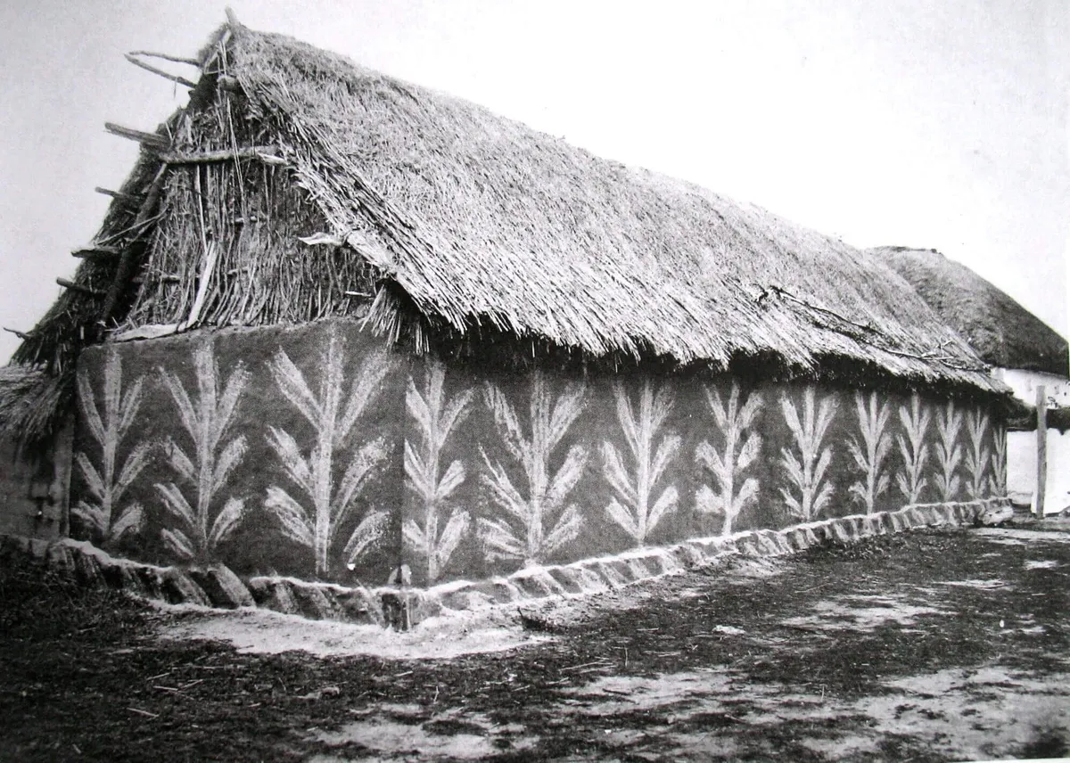 Інтер'єр української етнічної хатиСтіни в хаті подекуди прикрашалися рослинними орнаментами. Інколи наші предки додавали сюди і зображення птахів – півня, галки, сороки. Ці малюнки виконувалися олійними фарбами.