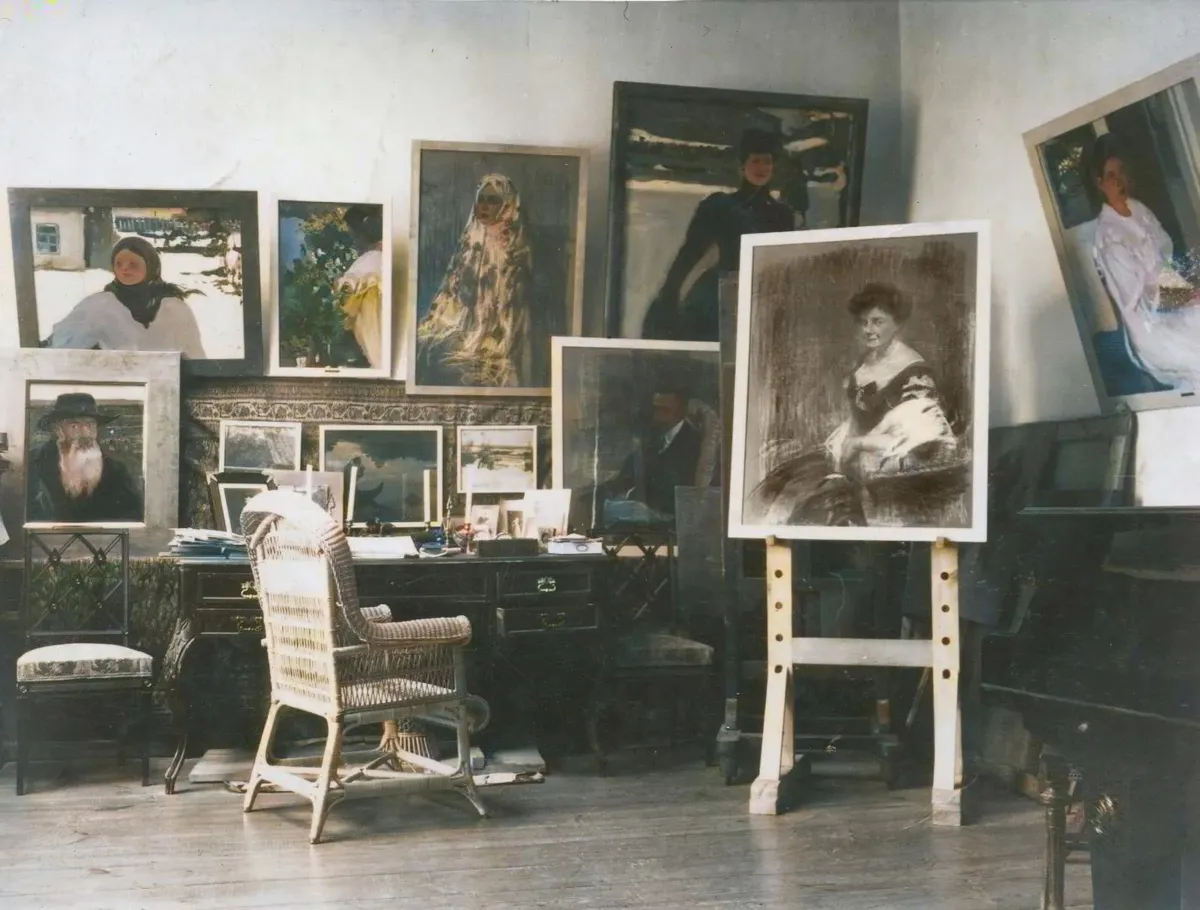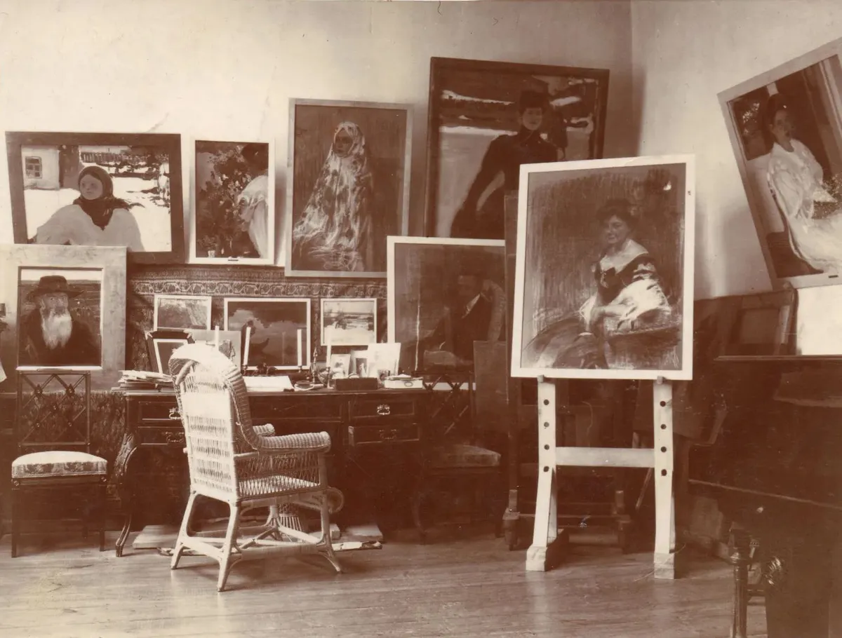 Знимка Михайла Бойчука в студії з невідомою роботою