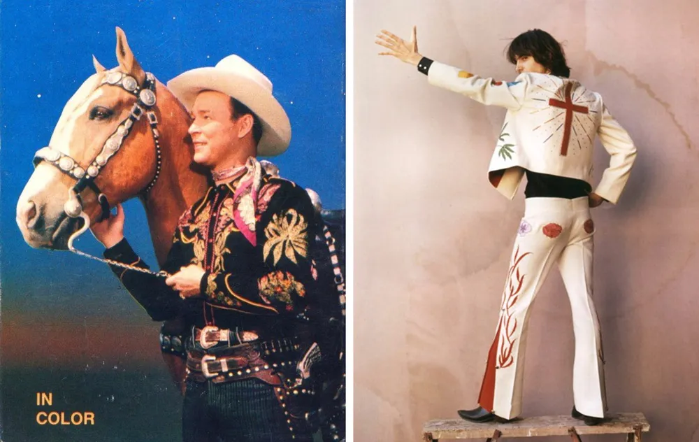 Костюм був розроблений Нуді Кон, американською кравчинею, яка створювала індивідуальні вбрання, прикрашені стразами, для багатьох знаменитостей у 1970-х роках. Цей конкретний костюм з його вишуканою вишивкою та ковбойським капелюхом із зображенням зірок є одним з його найвідоміших вбрань тієї епохи. Ефектний стиль співака та вишукані сценічні костюми стали визначальною частиною його публічного іміджу.