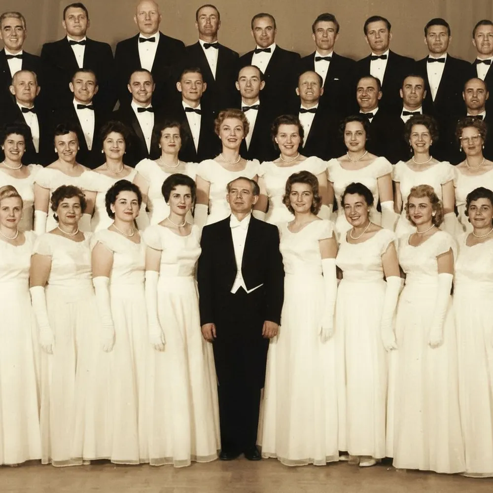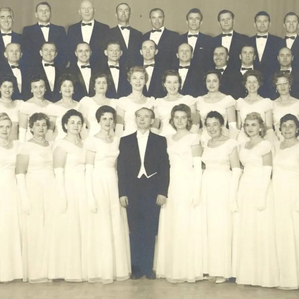 Володимир Божик, диригент хору «Кобзар», з хористами. Лос-Анджелес, 1963.