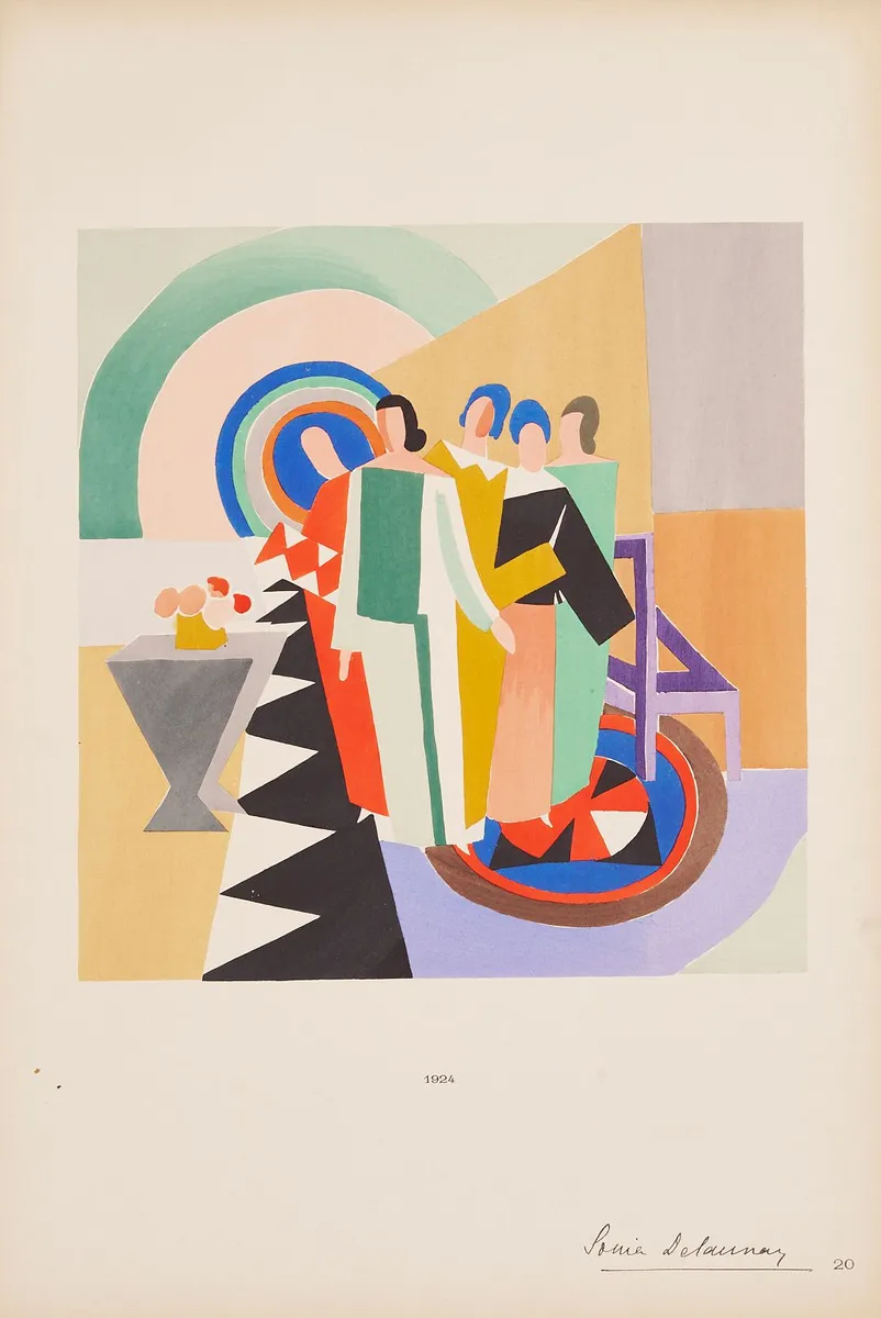 Соня Делоне, її картини, її об'єкти, її одночасні серветки, її мода, 20 трафаретних пластин, Париж, 1925. Продано за 13 750 доларів, що є рекордом для цієї роботи.