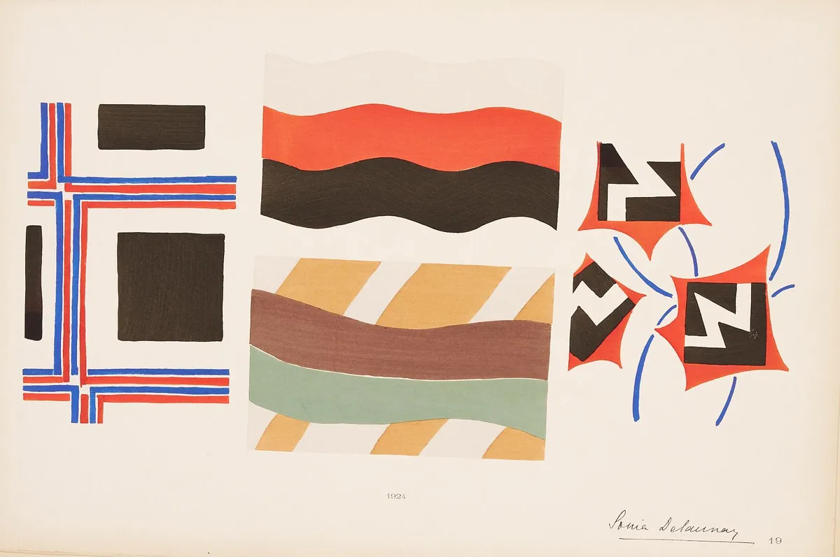 Соня Делоне, її картини, її об'єкти, її одночасні серветки, її мода, 20 трафаретних пластин, Париж, 1925. Продано за 13 750 доларів, що є рекордом для цієї роботи.