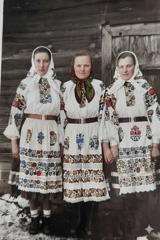 Women and girls, possibly dressed to celebrate a wedding, in Ukraine's Pavlohrad Region in 1909