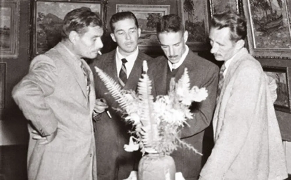 Vasyl Parakhin Alla Horska Hryhoriy Synytsia Viktor Zaretsky — Near the "Prometheus" mosaic.