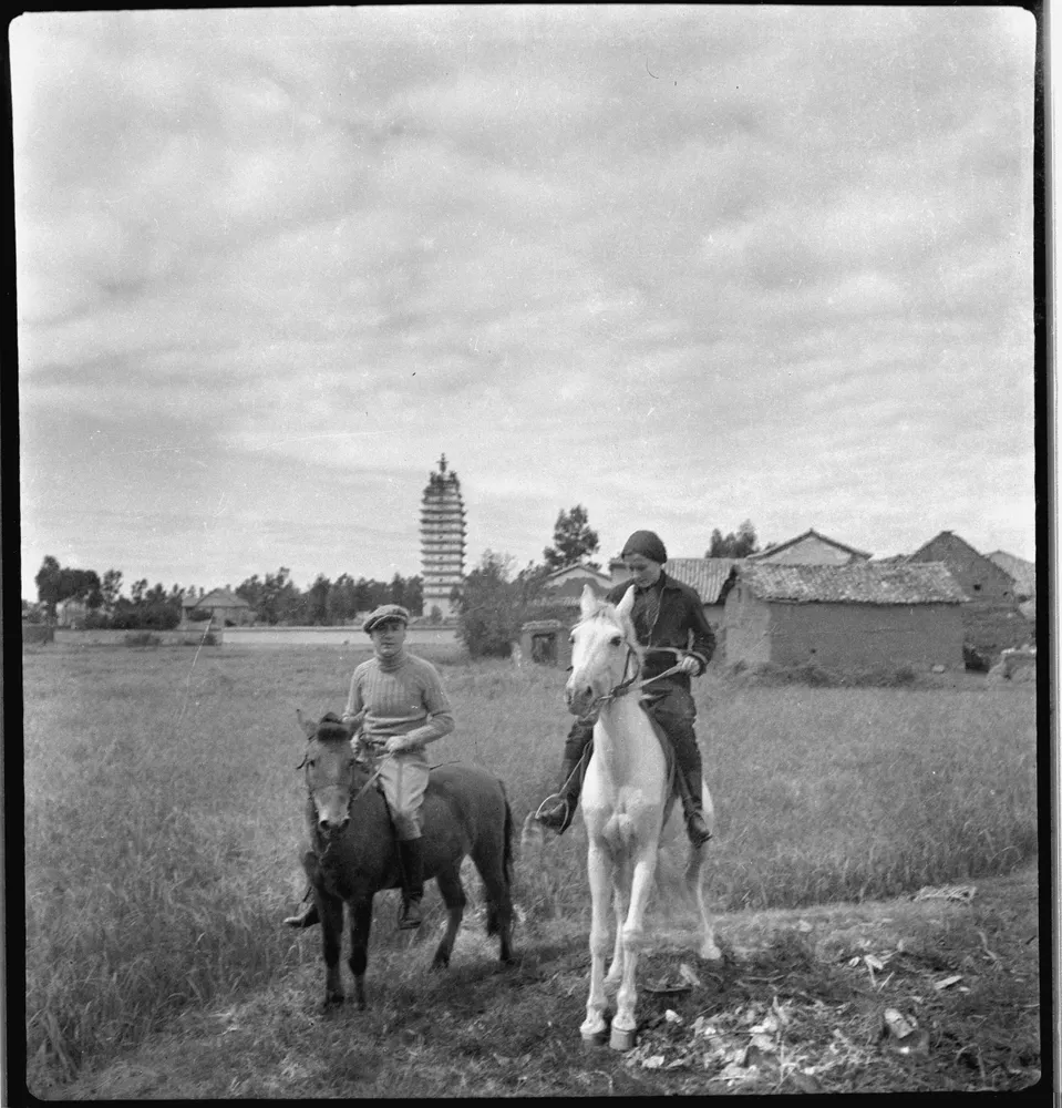 Jablonska with her husband Jean-Marie Oudin on horseback in Vietnam in the city of Tonkin
