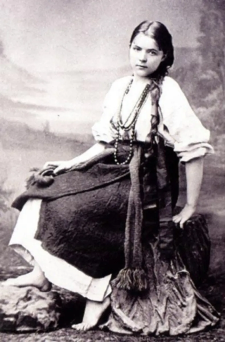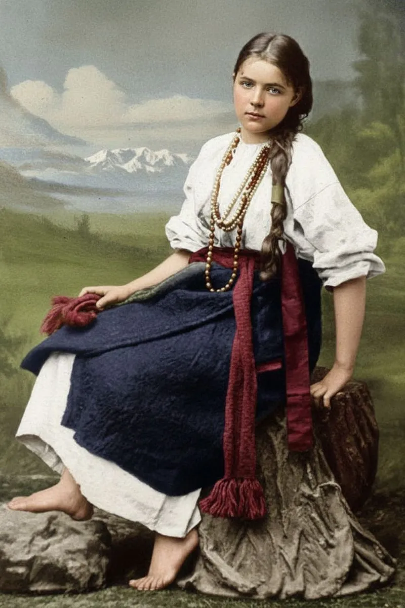 In 1876, after years in Europe, 17-year-old Marie Bashkirtseff joyfully reconnected with her roots in Ukraine. Visiting Havrontsi, Chernyakivtsi, and Prince Kochubey’s estate, she wore a traditional Ukrainian costume. This moment was captured by renowned Poltava photographer Józef Chmielewski.