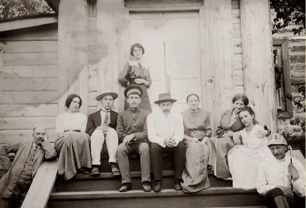 Living Echo of the Cossack Elite: Georgiy Narbut in Paraska Apostol’s Kontusz with Kelep and Colonel MiloradovychIn the photograph, Georgiy Narbut stands in the Cossack hall of the Tarnovsky Museum (now a room of the Chernihiv Regional Library for Youth), fully immersed in a historical Ukrainian image. He is dressed in the kontusz of Paraska Apostol, daughter of Hetman Danylo Apostol, holding a kelep in his right hand, while to his right stands Colonel Mykhailo “Cannon” Miloradovych. This staged yet documentary scene shows Narbut not just studying Cossack-era artifacts, but literally wearing them, turning himself into a living embodiment of the Ukrainian noble-Cossack past.