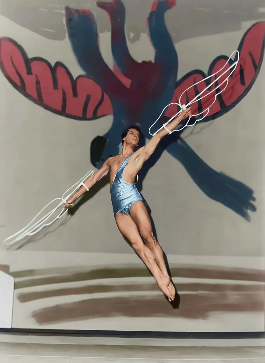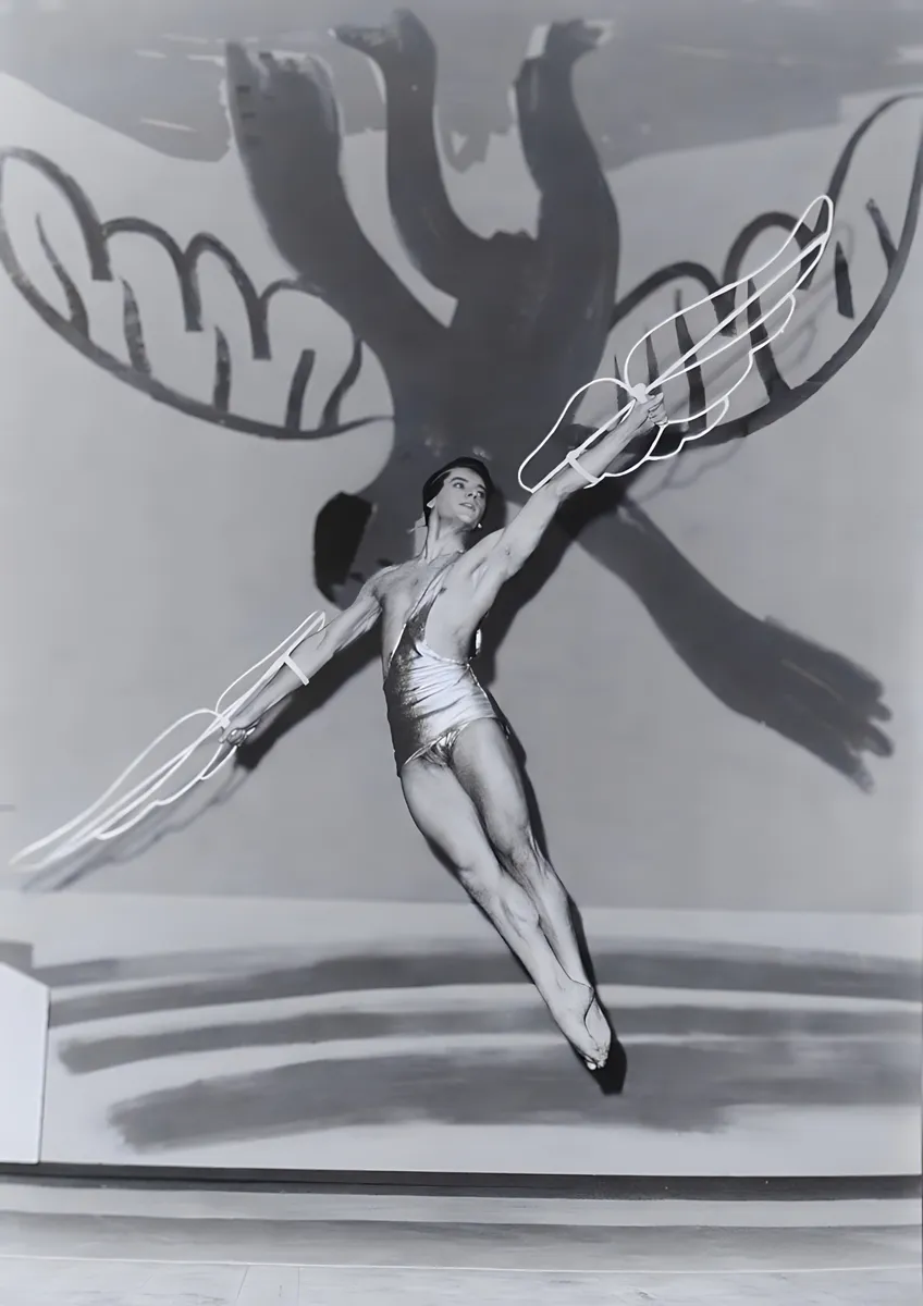 Serge Lifar in a suit with wings painted for him by Pablo Picasso