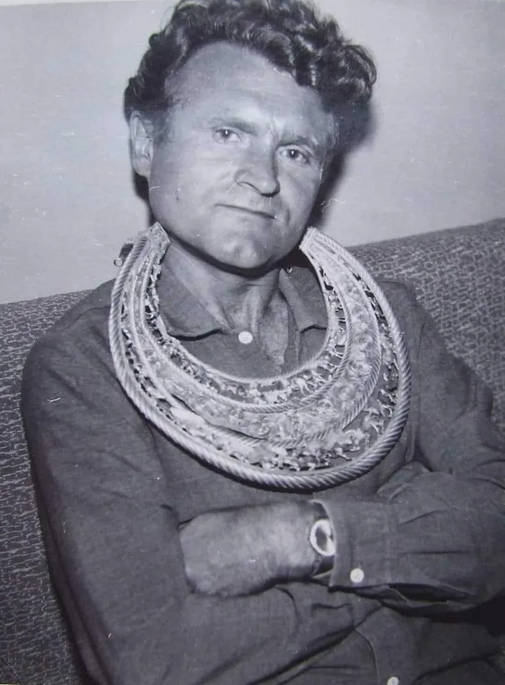 Ukrainian archaeologist Borys Mozolevski with the Scythian Golden Pectoral, which he discovered in 1971.
