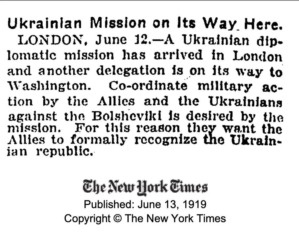 UKRAINIAN MISSION HERE. Petlura's Government Seeks Recognition by United States.