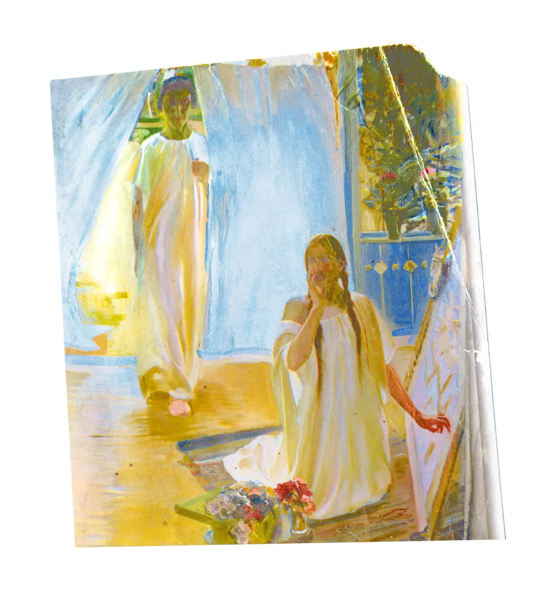 Cherry WindThe painting depicts two figures in a vibrant, patterned setting, characteristic of the artist's focus on everyday life and Ukrainian culture.